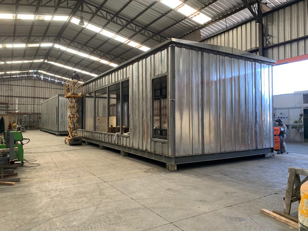 Cada módulo se construye con estructura metálica certificada, aislamiento térmico-acústico, sistemas HVAC, domótica e integración solar fotovoltaica.